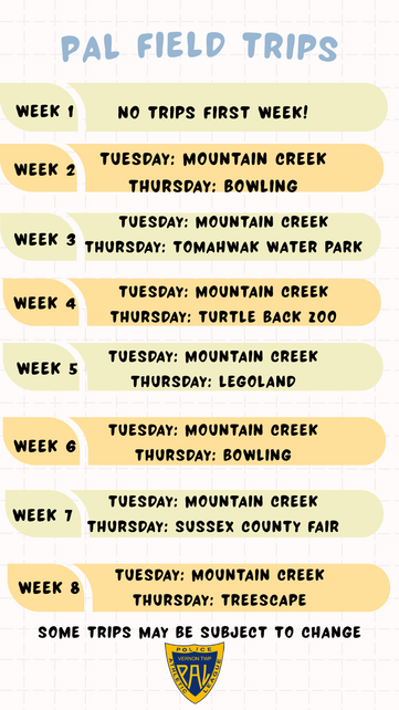 Campers will enjoy weekly trips to Mountain Creek Waterpark, Turtle Back Zoo, TreEscape, Bowling, and many more exciting adventures! Our camp is open to incoming 1st graders through 8th grade.