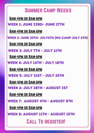 Our Winter Camp is offered over the schools winter break. Dates are as follows: December, 29th, 30th, 31th, January 2nd. There will be NO CAMP on January 1st(New Year's Day).